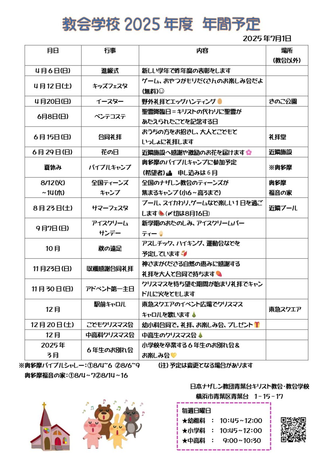 教会学校の活動は、日曜礼拝/分級/イベントなどがあります。
